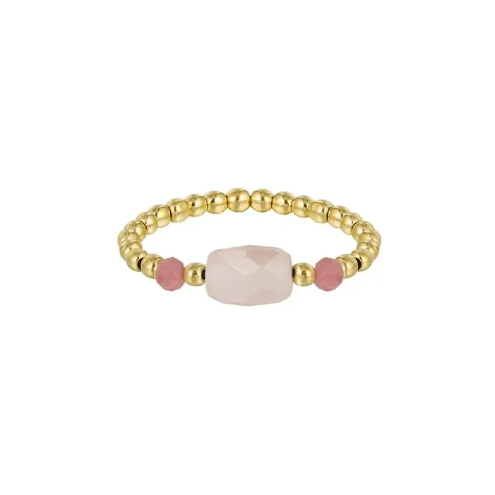 Hoe tof is deze elastieken gouden ring met drie roze stenen! Superleuk om deze ring te combineren met meerdere gouden ringetjes of roze sieraden! De ring is perfect voor een feestelijke gelegenheid en kan door het elastiek makkelijk aan elke vinger gedragen worden!