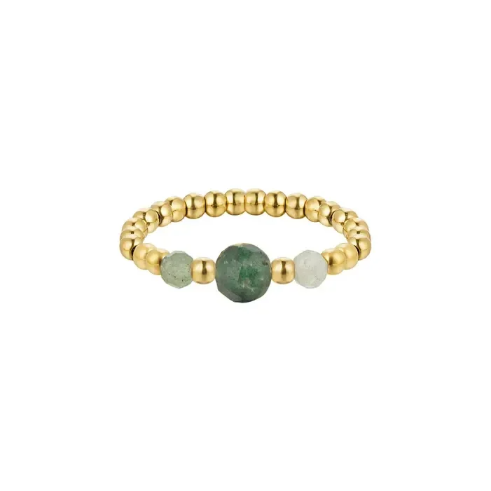 Hoe leuk is deze schattige kralen ring in de kleuren goud met groen. De ring is perfect te combineren met meerdere sieraden en is eenvoudig te verstellen dankzij het elastiek!