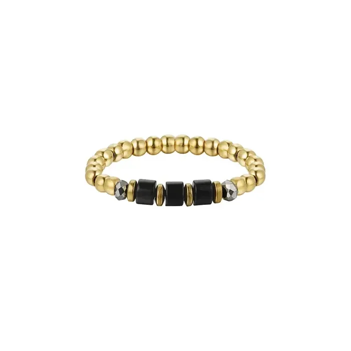 Hoe leuk is deze schattige kralen ring in de kleuren goud met zwart! De ring is perfect te combineren met meerdere sieraden en is eenvoudig te verstellen dankzij het elastiek!