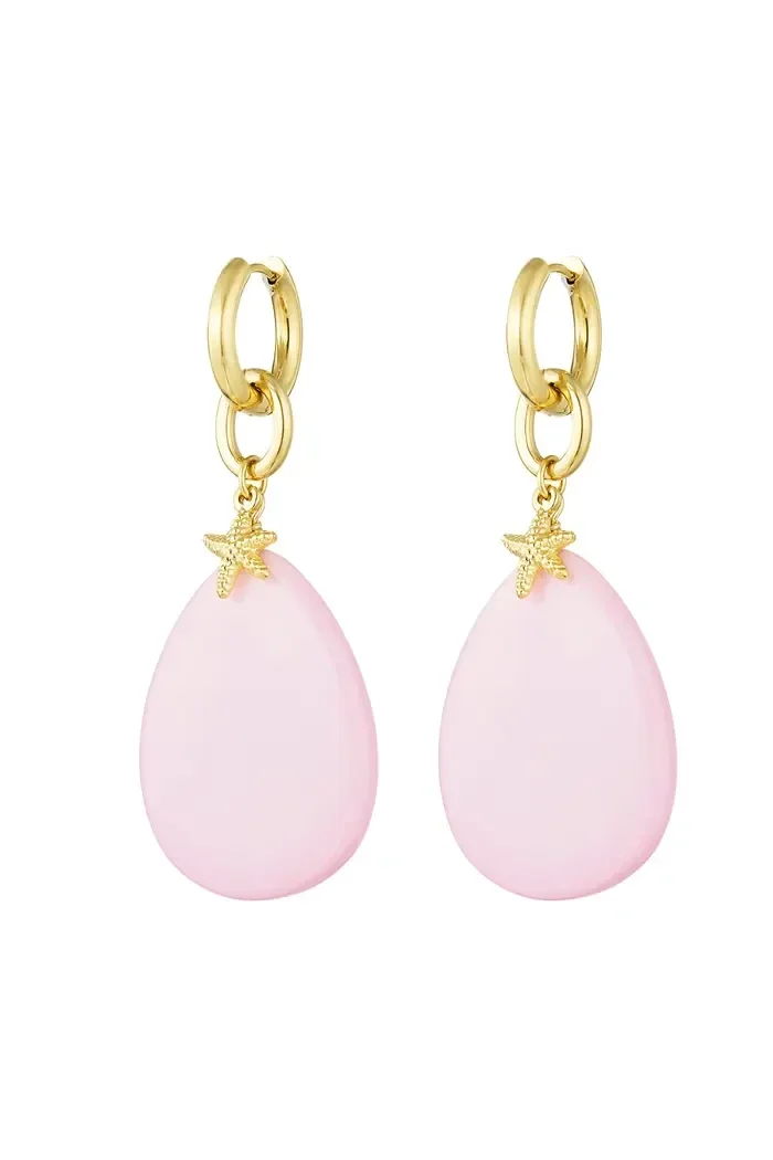 Met deze kleurrijke oorbellen heb je een combinatie tussen klassiek en vrolijk. De oorbellen zijn gemaakt van stainless steel en acryl.
