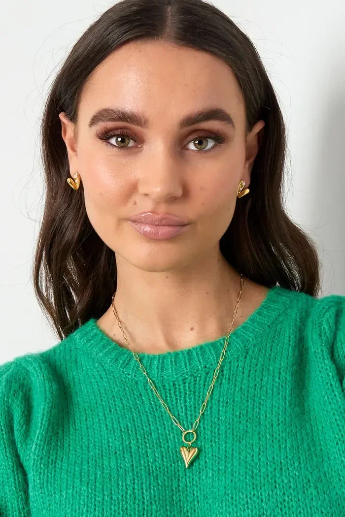 Deze ketting met het trending hartje eraan is een echte must have voor jouw collectie. De ketting is gemaakt van stainless steel.