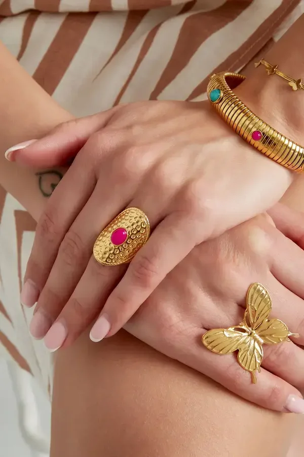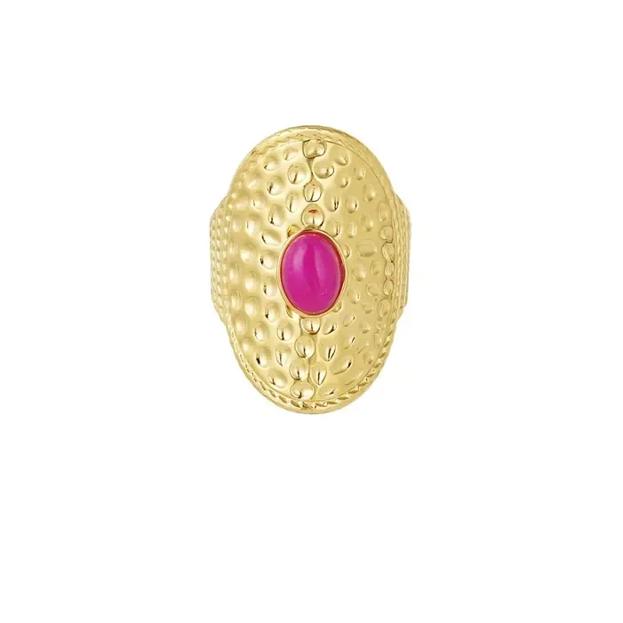 Hoe tof is deze statement ring met steen in de kleur roze! Deze ring is een echte Eye-catcher en perfect om jouw outfit mee af te stylen! Wij zijn helemaal verliefd op deze prachtige ring!