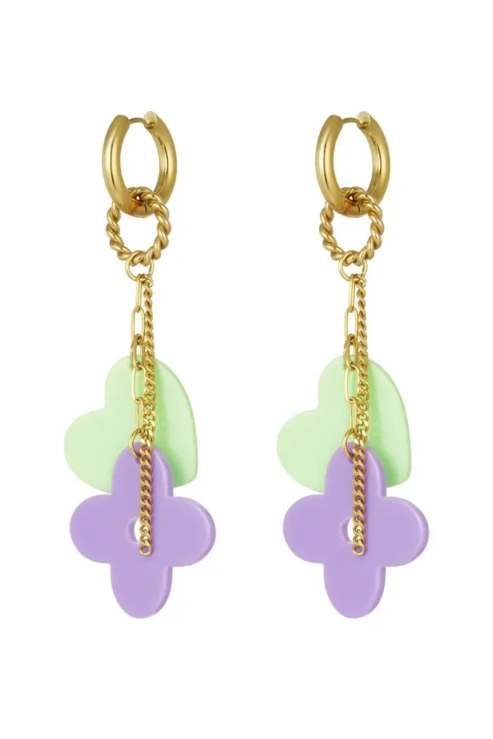 De oorbellen zijn stainless steel en afgewerkt met acryl.