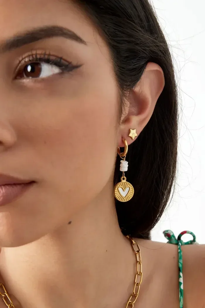 Deze leuke oorbellen met hart coin en witte zeeschelpjes zijn perfect te dragen naar een festival of leuk feestje en kunnen met oneindig veel leuke sieraden en tassen gecombineerd worden.