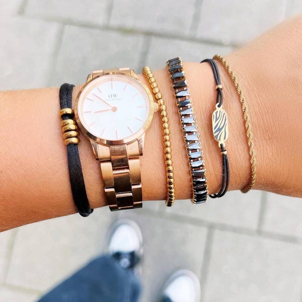 Armband Satijn Ringen Zwart/Goud van Bazou