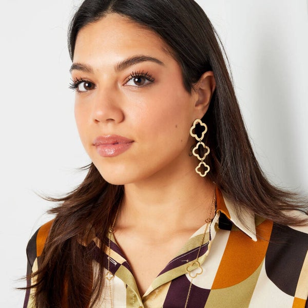 Hoe leuk zijn deze gouden statement oorbellen met prachtige bedels in de vorm van klavertjes. Dankzij deze prachtige oorbellen kun jij een perfecte look creëren. Je kunt deze oorbellen bijvoorbeeld perfect dragen naar een festival of een tof feestje.