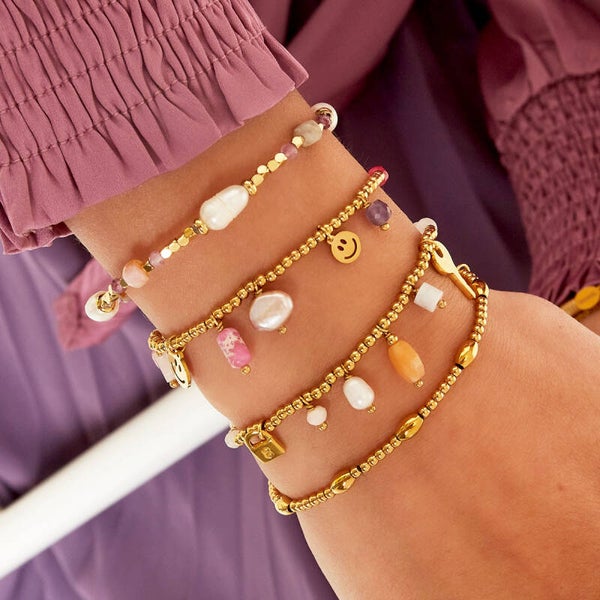 Roestvrijstalen armband geregen op elastiek met diverse leuke kralen!